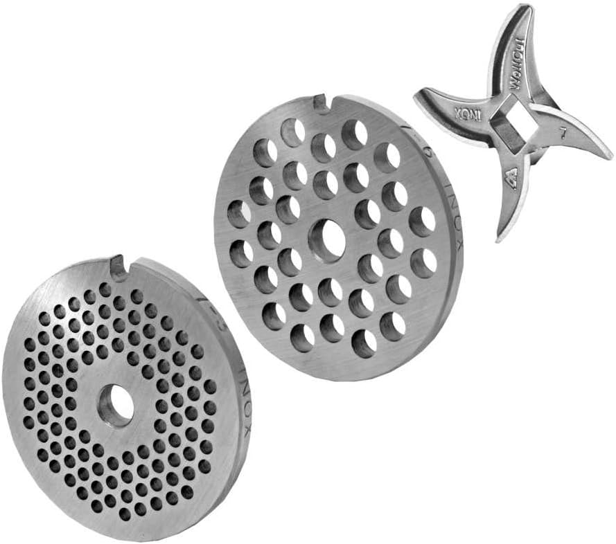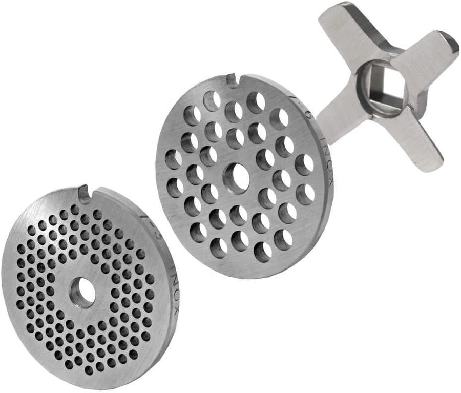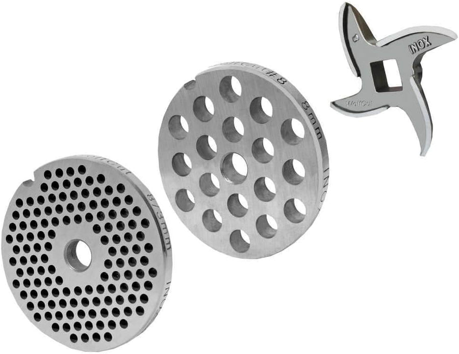 Wolfcut Lochscheibensatz mit 3,0mm + 8,0mm Bohrungen und 1 Kreuzmesser - kompatibel mit Fleischwolf