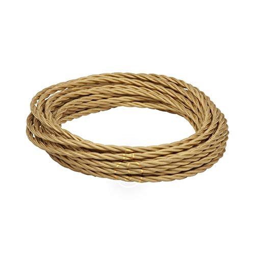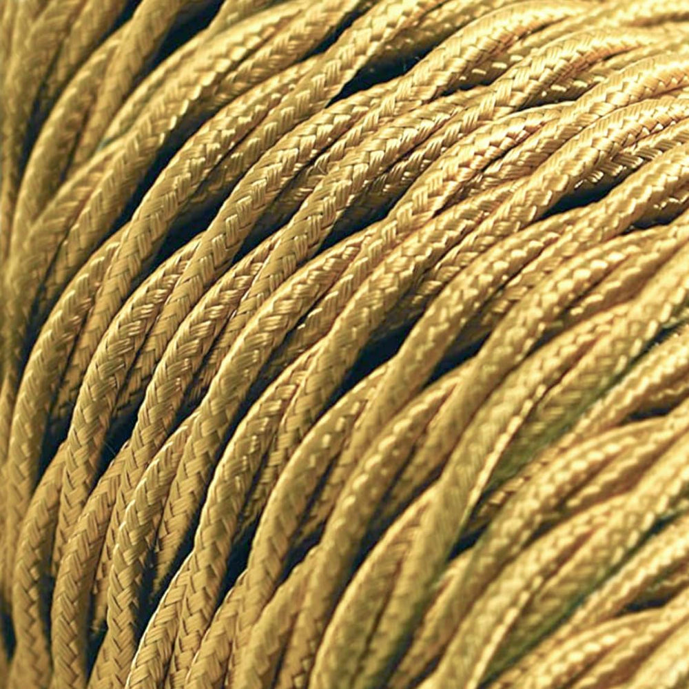 Amarcords - Textilkabel für Lampen GOLD, geflochten, Seide, 20 Meter, mit Erdung 3x1,50 - Grosses St