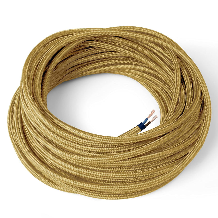 Amarcords - Textilkabel für Lampen GOLD, rund, Seide, 50 Meter, mit 2 Leiter 2x0,75 - Stoffkabel mit