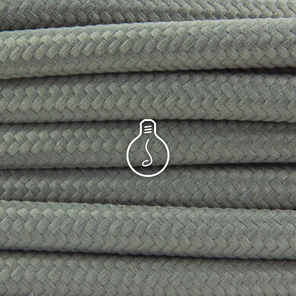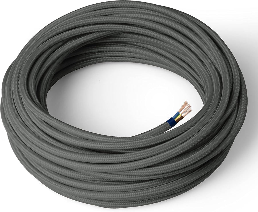 Amarcords - Textilkabel für Lampen GRAU, rund, Seide, 20 Meter, mit Erdung 3x0,75 - Stoffkabel mit f