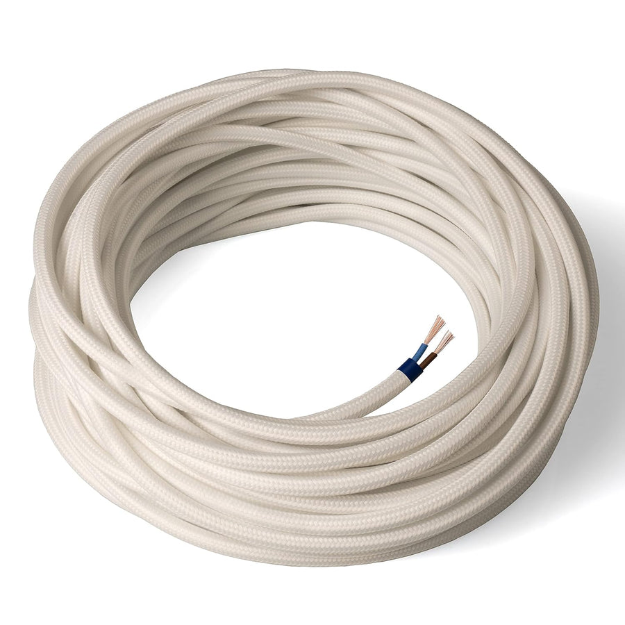 Amarcords - Textilkabel für Lampen ELFENBEIN, rund, Seide, 20 Meter, mit 2 Leiter 2x0,75 - Stoffkabe