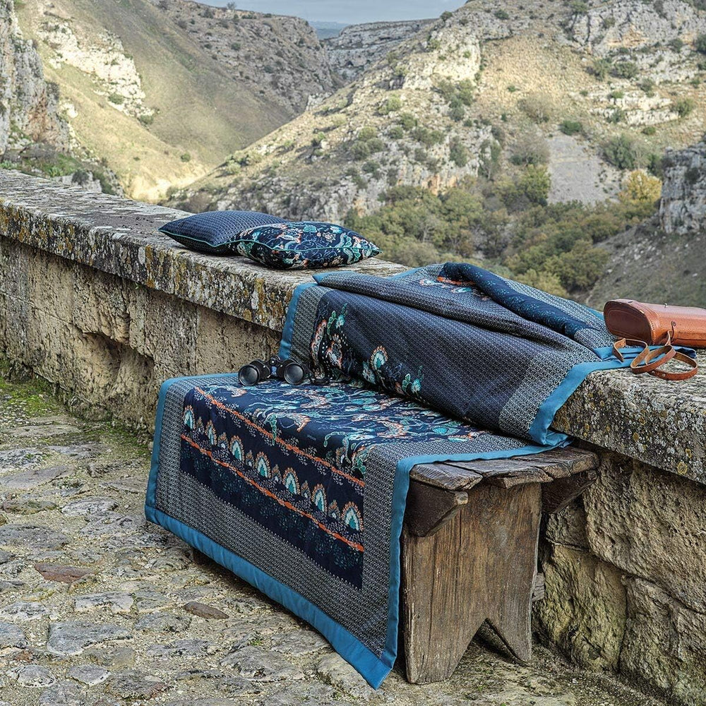 Bassetti OPLONTIS Tagesdecke, 100 57 Fäden pro cm² /Füllung: 100% Reiner Baumwolle, Blau, 265x255 cm