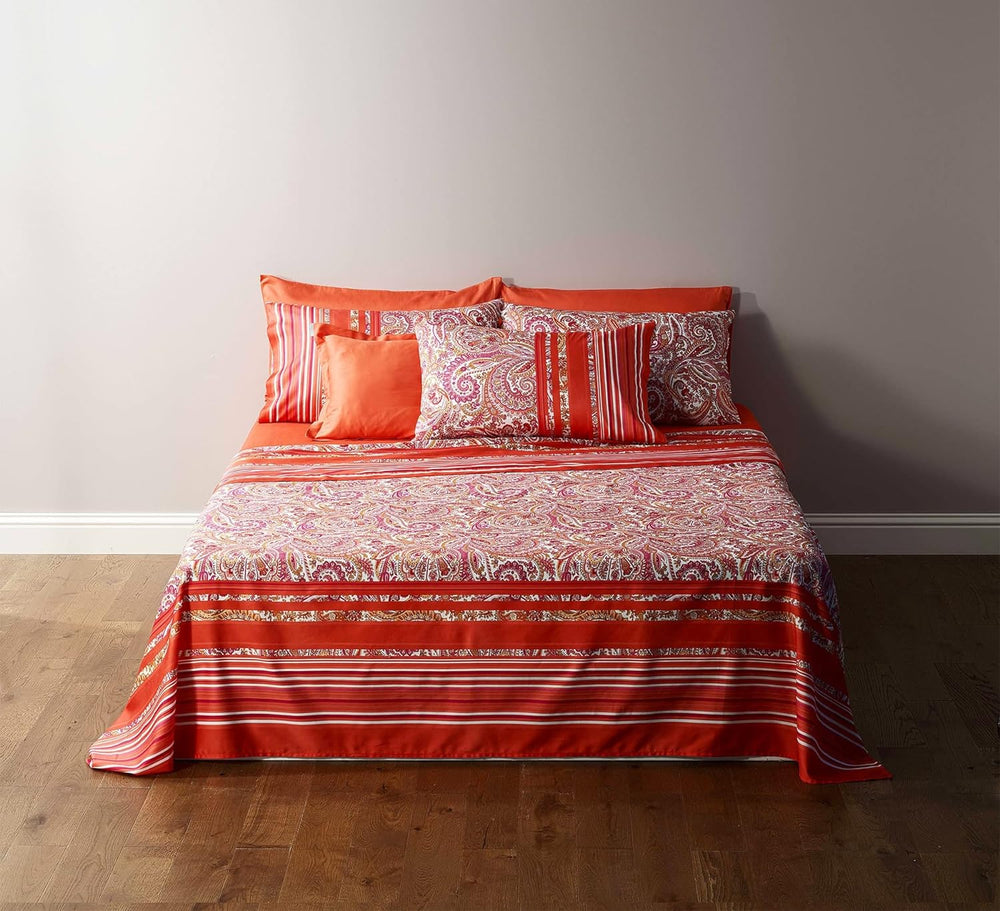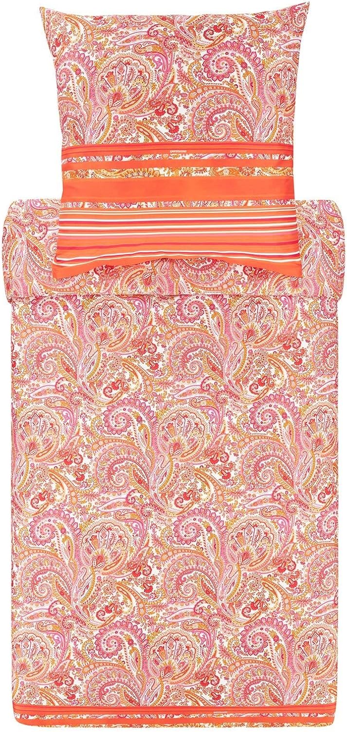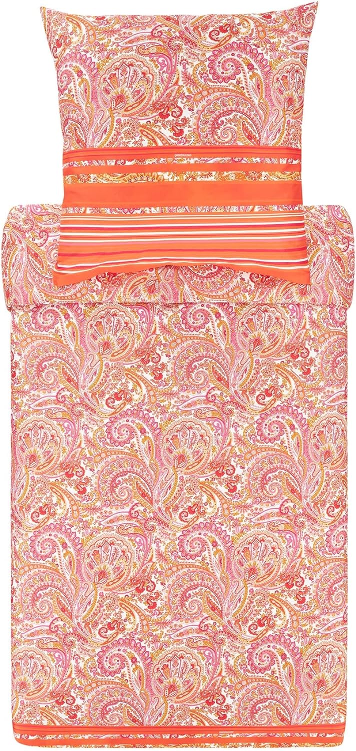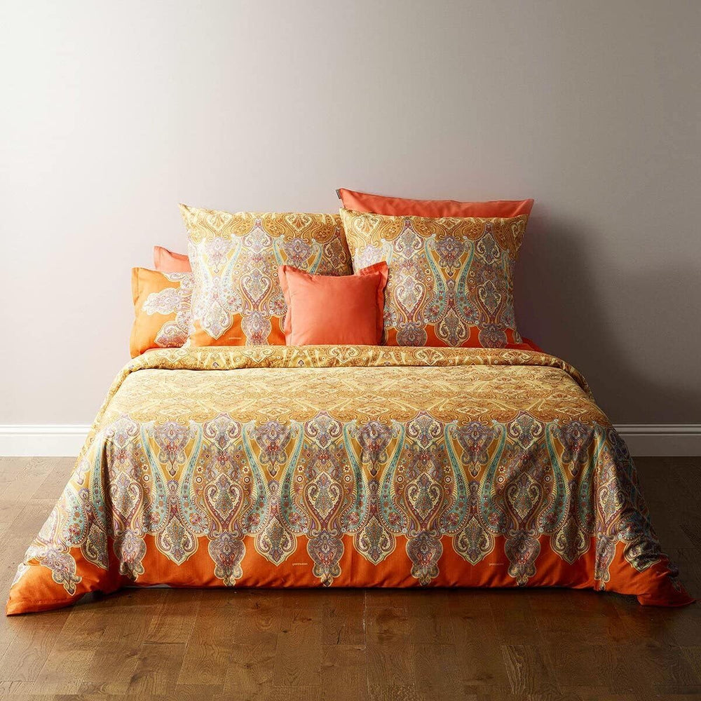 Bassetti ORTIGIA Bettwäsche + 2 Kissenhüllen aus 100% Baumwollsatin in der Farbe Orange O1, Masse: 2