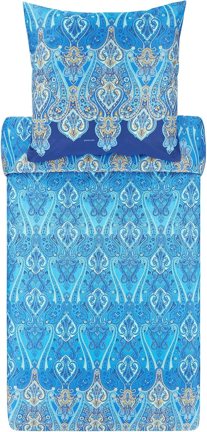Bassetti RAGUSA Bettwäsche + 2 Kissenhüllen aus 100% Baumwollsatin in der Farbe Blau B1, Masse: 200x