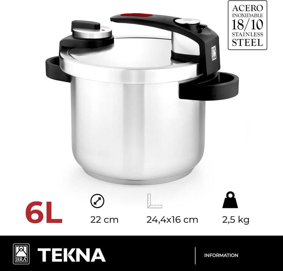 BRA Tekna - Schnellpresstopf 6 Liter, Edelstahl, geeignet für alle Küchentypen, inklusive Induktion,