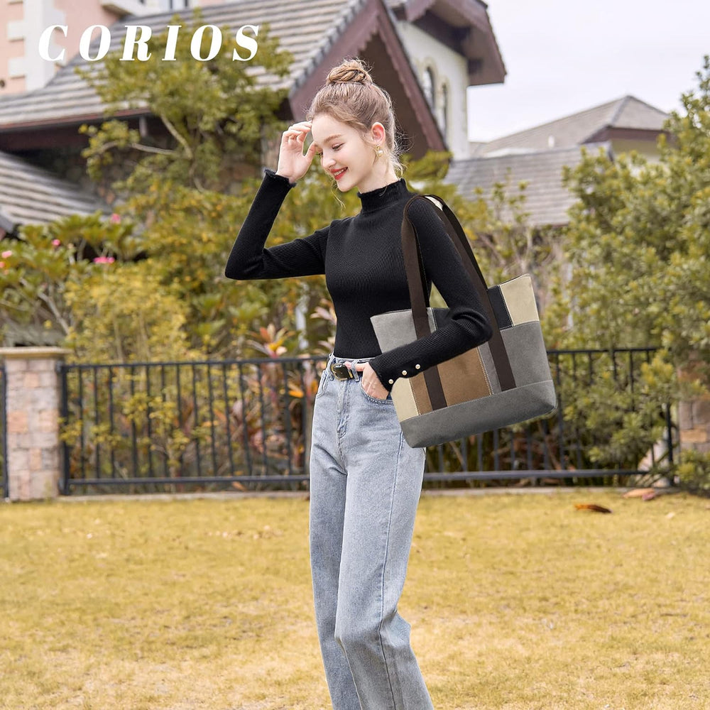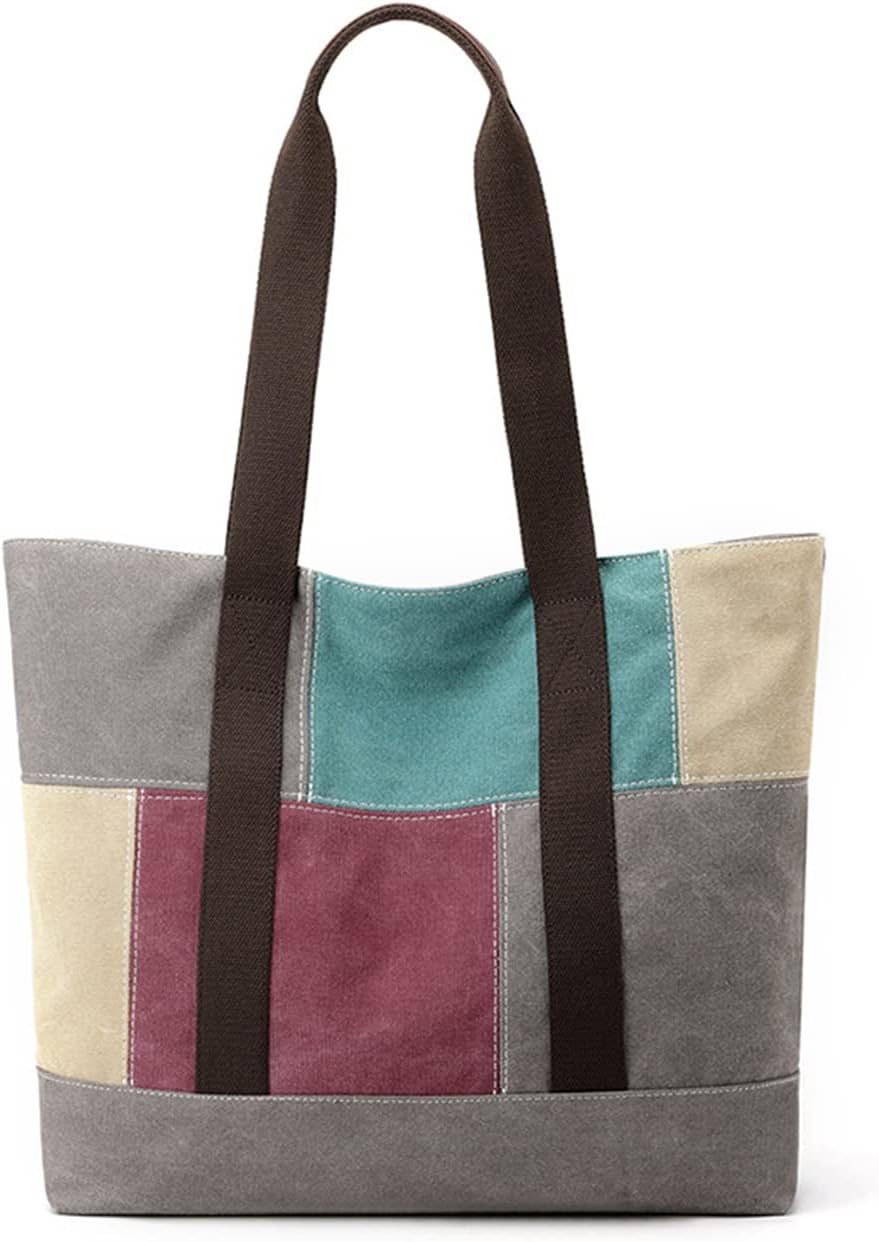 CORIOS Damen Canvas Handtasche Patchwork Henkeltasche Casual Tragetasche Grosse Kapazität Tote Beute