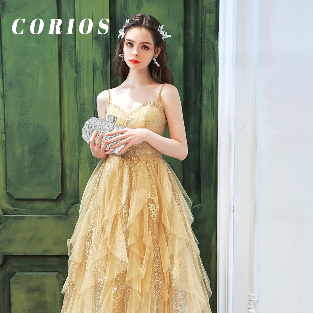 CORIOS Damen Clutch Strass Abendtasche Glitzer Diamant Handtasche Abnehmbarer Kette Tasche Elegante