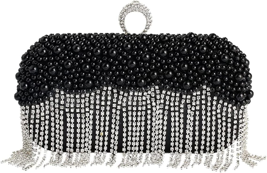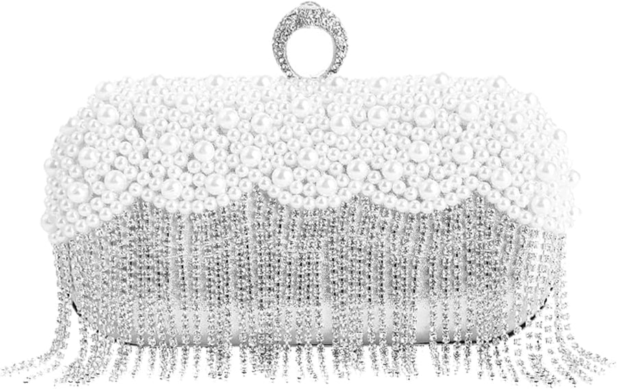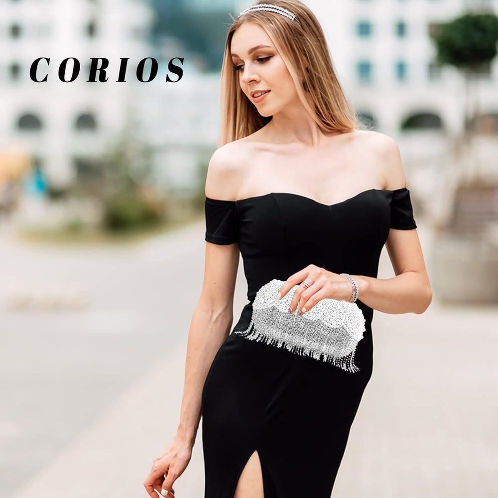 CORIOS Damen Clutch Perlen Strass Fransen Abendtasche Braut Handtasche Abnehmbarer Kette Umhängetasc