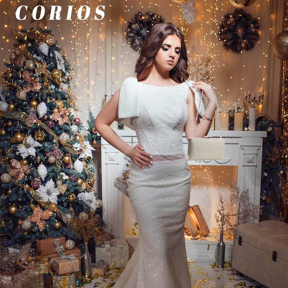 CORIOS Damen Clutch Tasche Pailletten Abendtasche Glitzernde Handtasche mit Abnehmbarer Kette Brautt