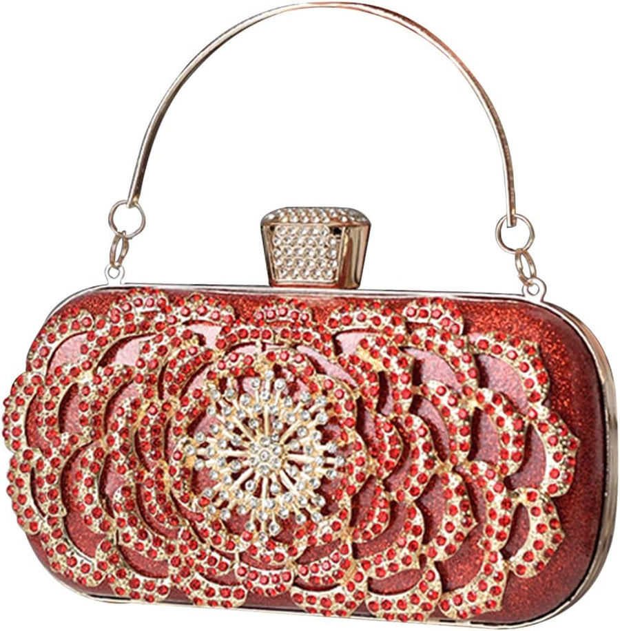 CORIOS Damen Clutch Tasche Blumen Abendtasche Hochzeit Bag Elegante Kette Shiny Strass Handtasche Sc