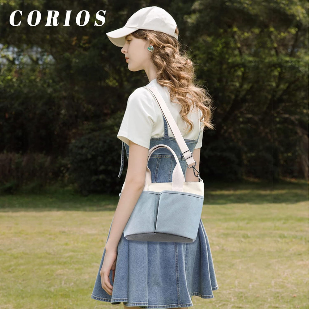 CORIOS Damen Canvas Umhängetasche Casual Handtasche Mittlere Kapazität Schultertasche Tote Beutel Mu