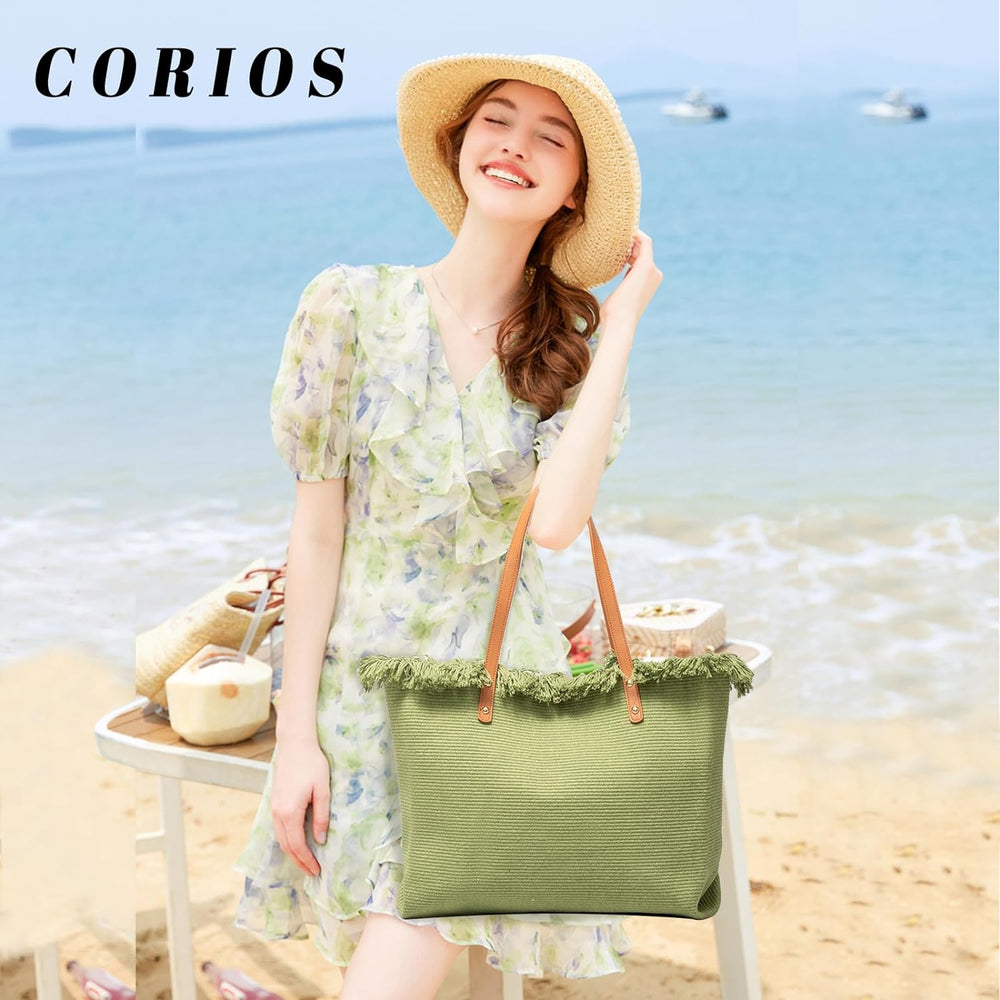 CORIOS Damen Canvas Handtasche Sommer Strand Tasche Grosse Schultertasche Böhmische Tote Beutel Bunt