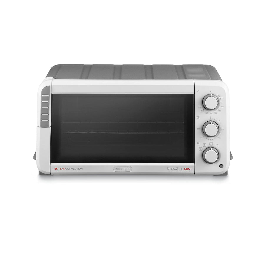 DELONGHI EO12512.WG Sfornatutto Mini, 1400 W, 12 Liter, Kunststoff, Weiss / Schwarz Belüftet, 5 Funk