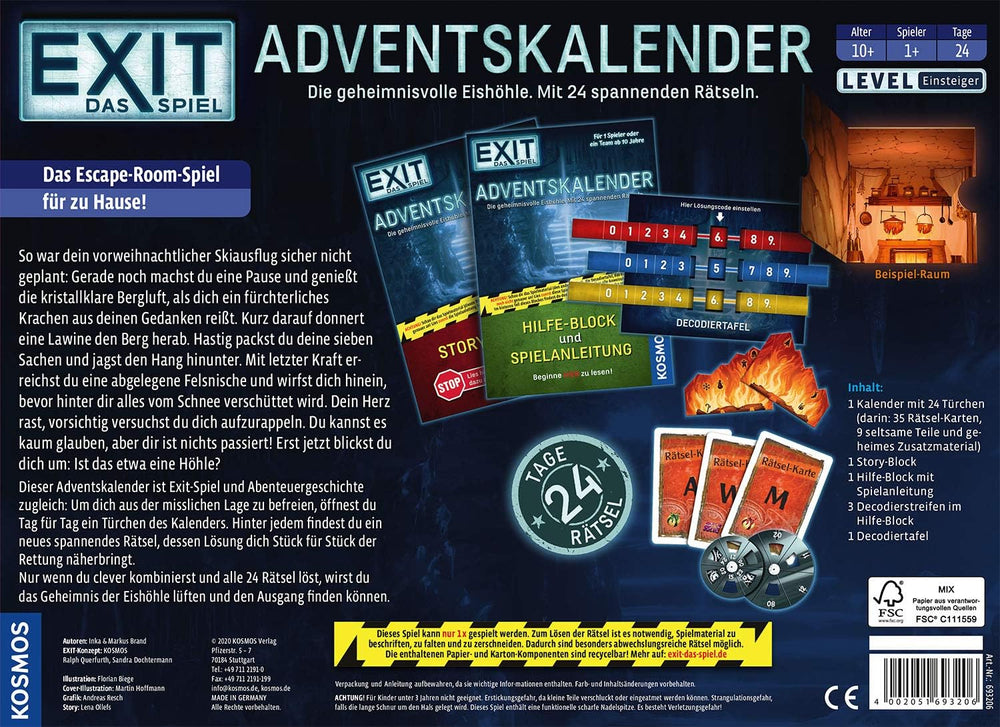 KOSMOS 693206 EXIT - Das Spiel - Adventskalender: Die geheimnisvolle Eishöhle, mit 24 spannenden Rät