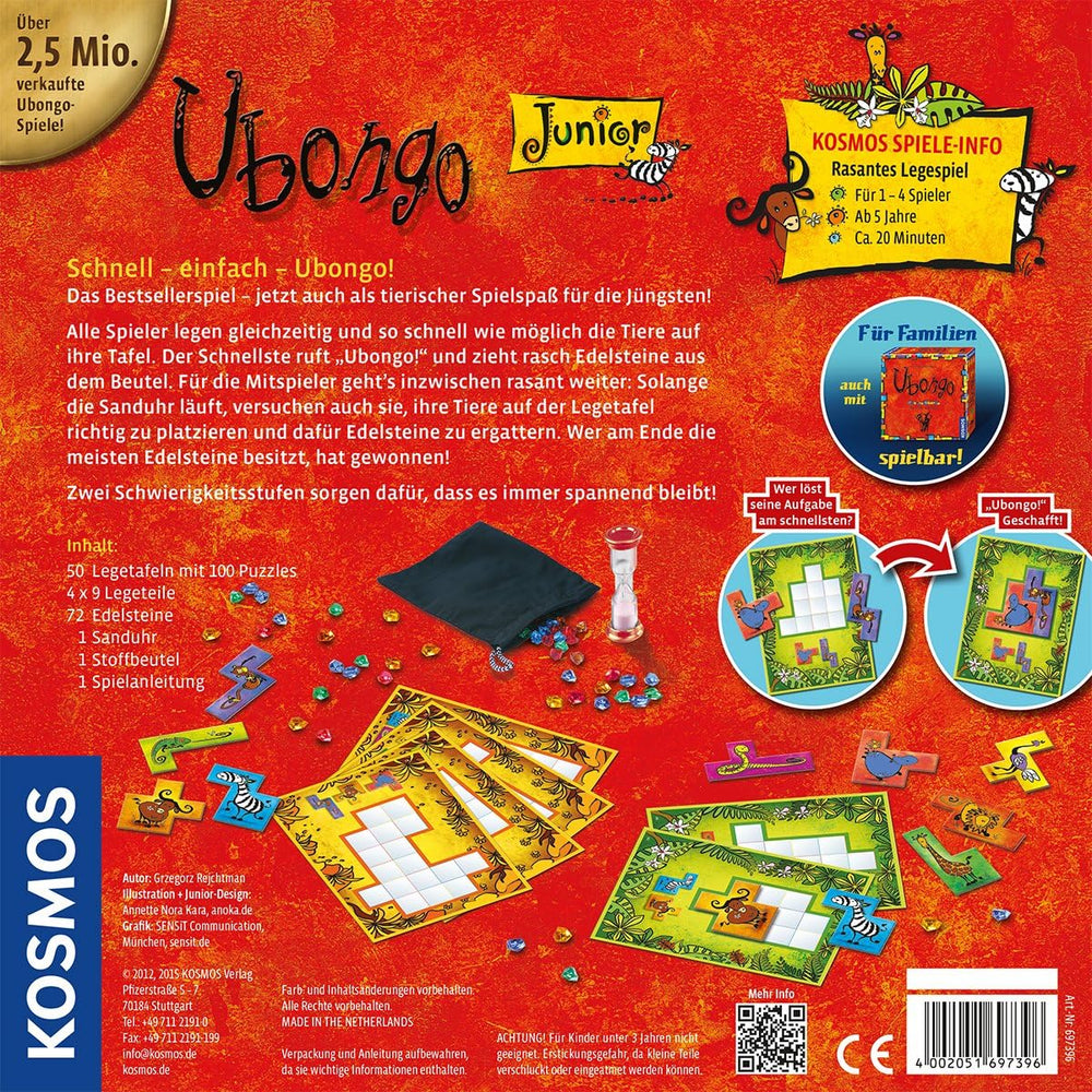 Kosmos 697396 Ubongo Junior, rasantes Kinderspiel ab 5 Jahren, Knobelspass und Legespiel, für 1-4 Sp