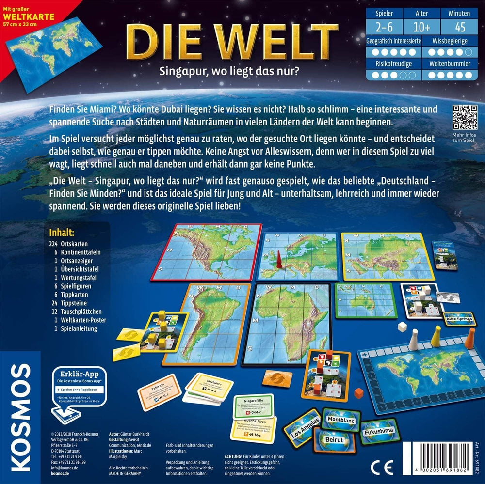 KOSMOS 691882 Die Welt, Geografie Spiel, Familienspiel für 2-6 Spieler, ab 10 Jahre, Weltreise Spiel
