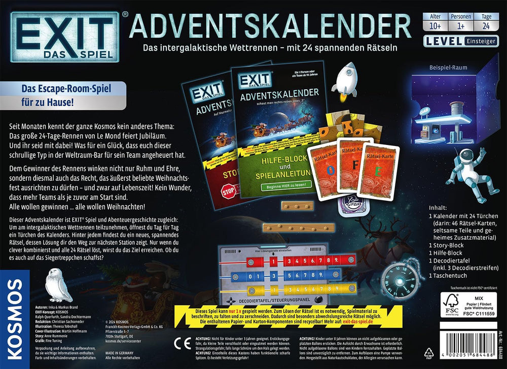 KOSMOS 684488 EXIT® - Das Spiel - Adventskalender 2024: Das intergalaktische Wettrennen, mit 24 span