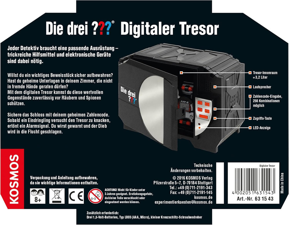 Kosmos Die DREI ??? Digitaler Tresor, Detektivspielzeug, Detektiv Ausrüstung, Detektiv Set, Mitbring