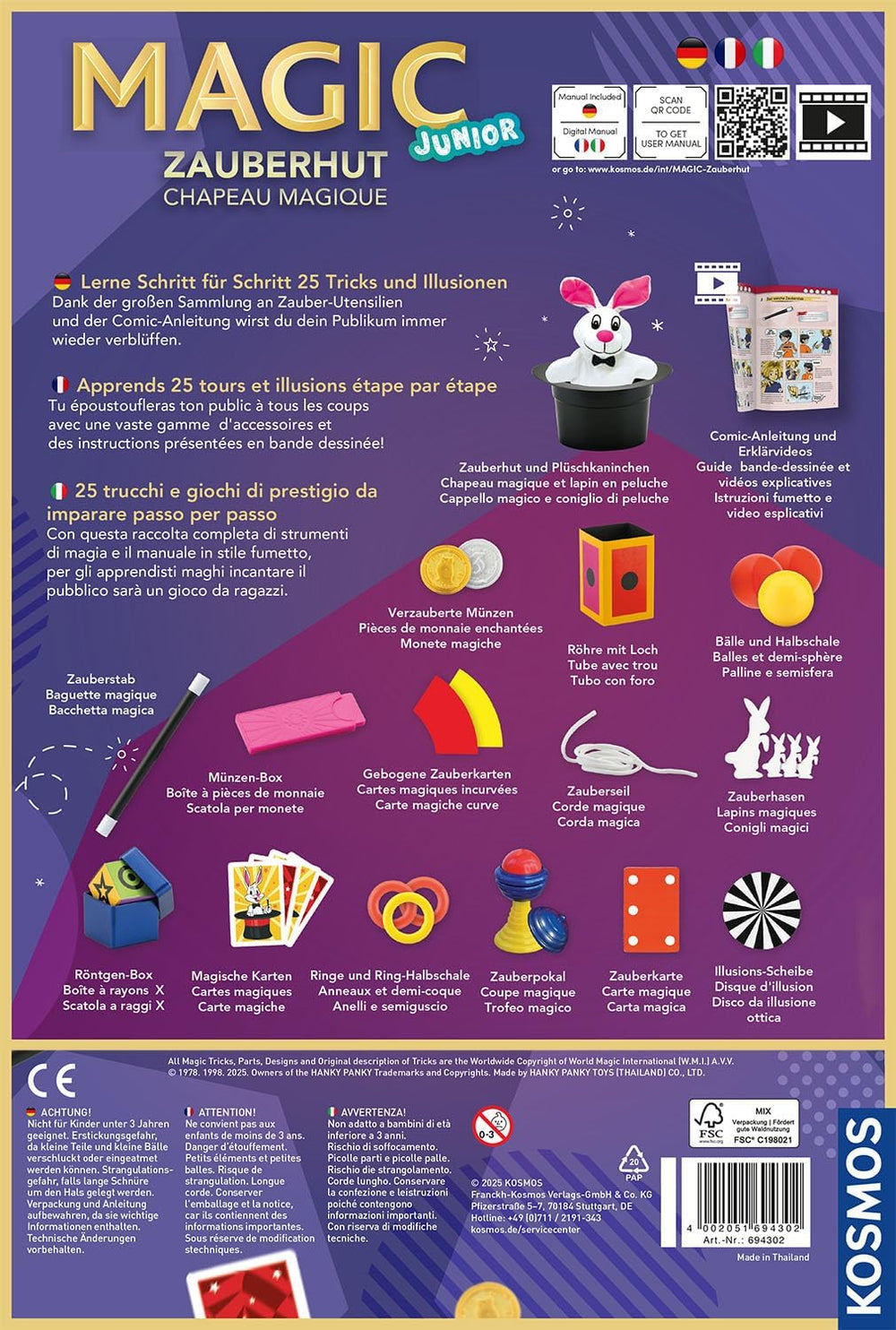Kosmos 694302 Magic Zauberhut, Lerne einfach Zaubertricks und Illusionen, Zauberkasten mit Zaubersta