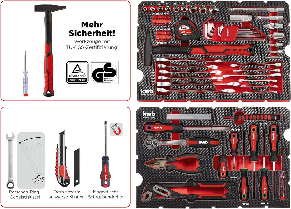 kwb Werkzeug-Koffer inkl. Werkzeug-Set, 65-teilig & H+H Werkzeug 45200 45500 VDE Standardprüfer 4520