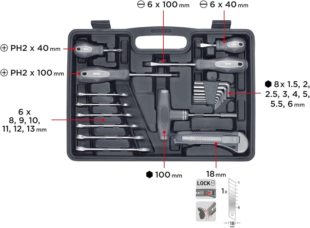 kwb Werkzeug-Koffer inkl. Werkzeug-Set, 40-teilig, gefüllt, robust und hochwertig, ideal für den Hau