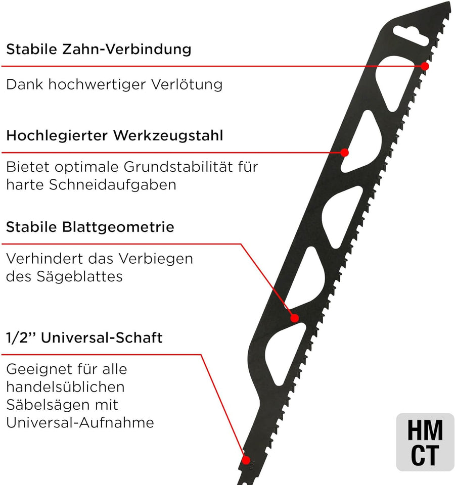 kwb Säbelsägeblätter für Steinbearbeitung, HM Hartmetallzähne, Hochlegierter Stahl, stabile Zahn-Ver