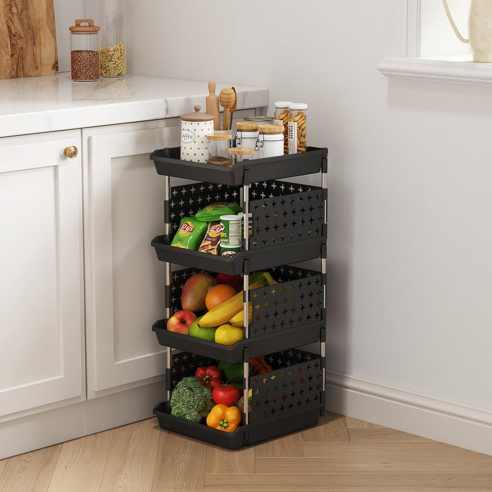 Lifewit Stapelbare Aufbewahrungsboxen, 3-etagiges Korbregal für Garderobe, Küchenwagen für Gemüse, S