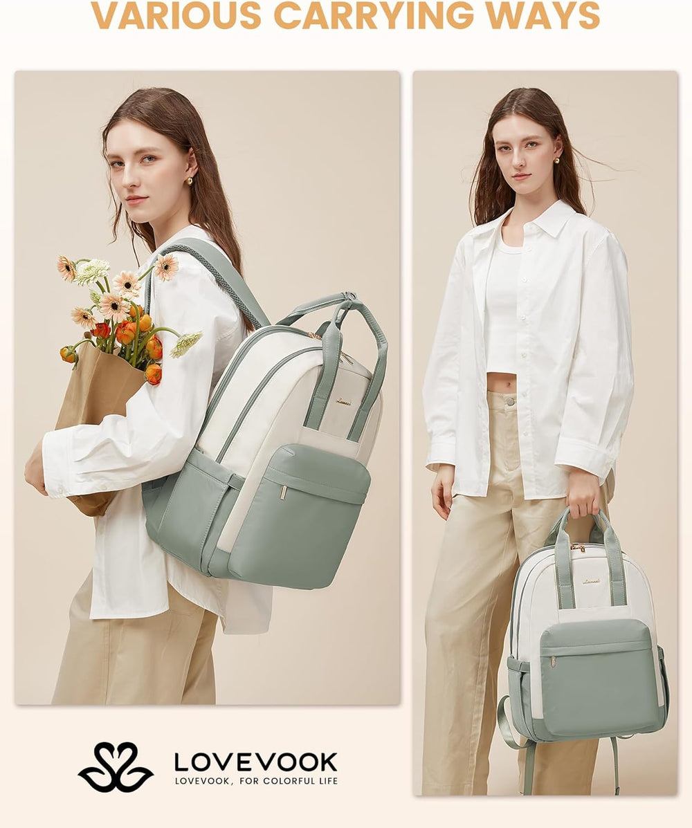 LOVEVOOK Rucksack Damen, 15,6 Zoll Laptop Schulrucksack Teenager Mädchen Wasserdicht, Elegant Reiser