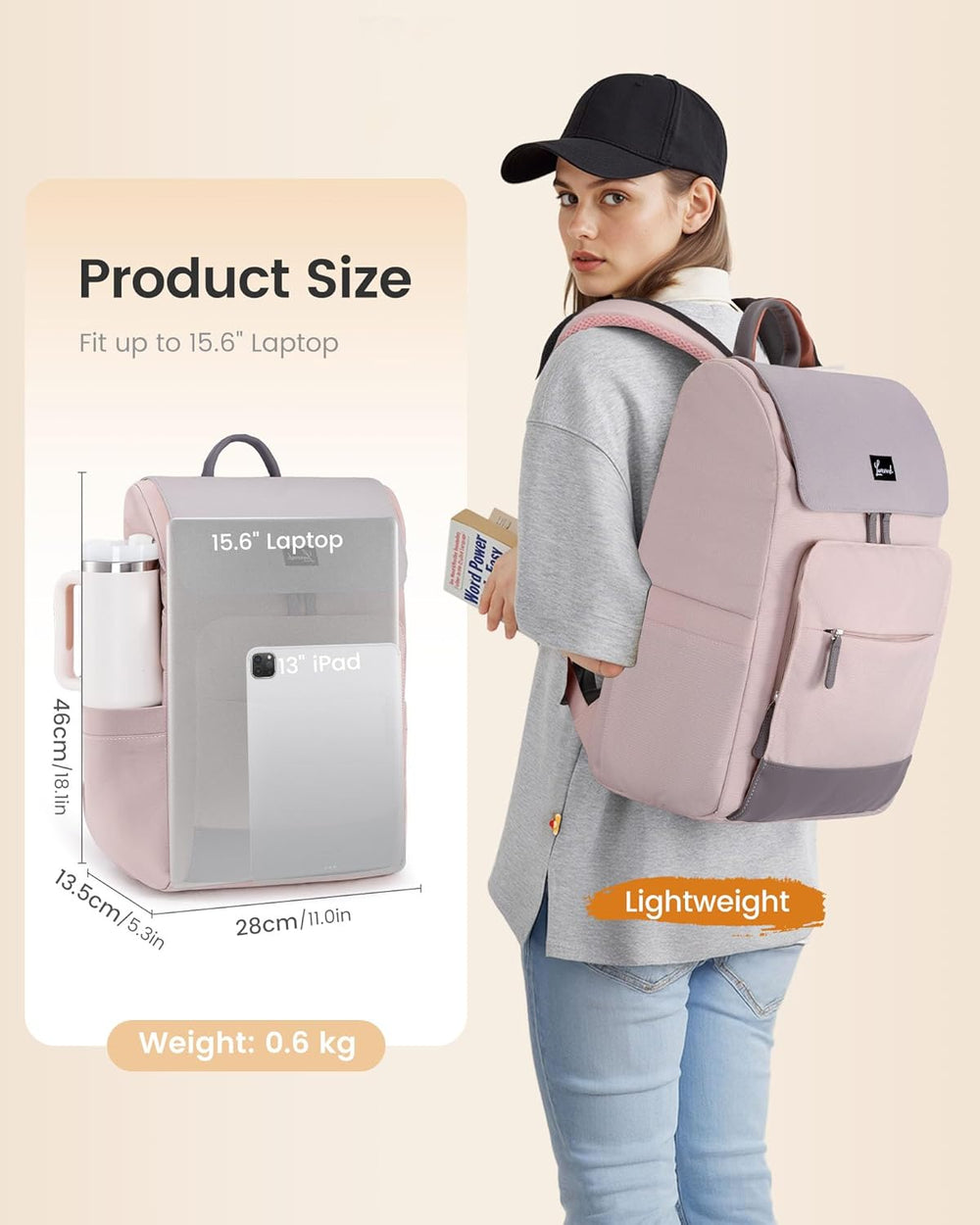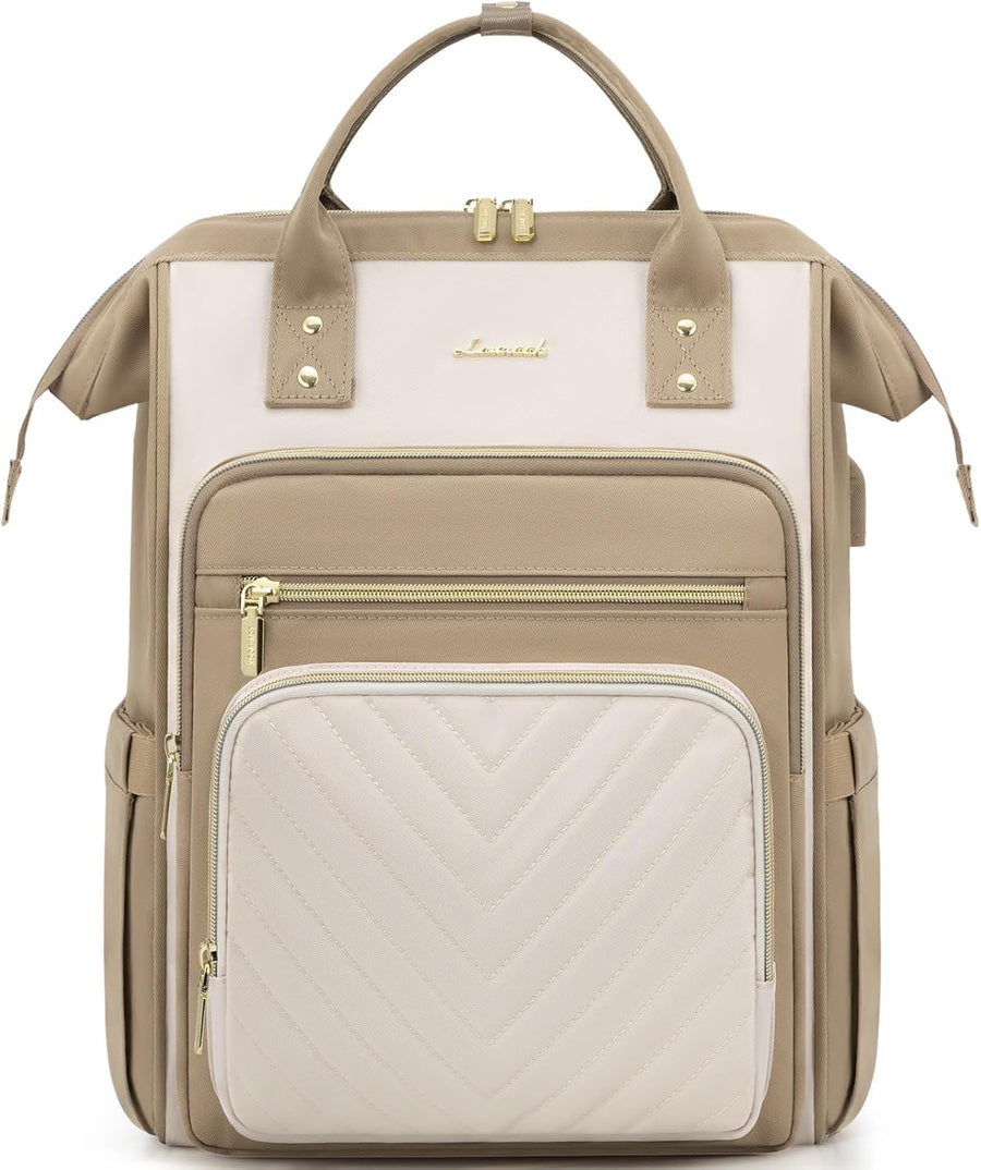 LOVEVOOK Rucksack Damen, 15,6 Zoll Laptop Schulrucksack Teenager Beige Khaki 15.6", Beige Khaki 15.6