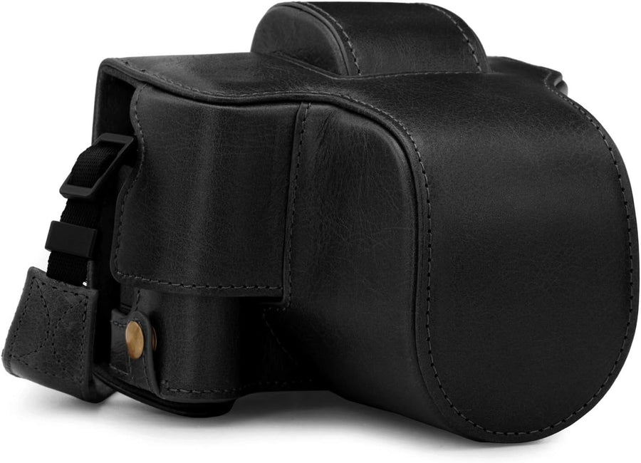 MegaGear MG1804 Ever Ready Kameratasche aus Leder, kompatibel mit Sony Alpha A6600 (18-135 mm), Schw