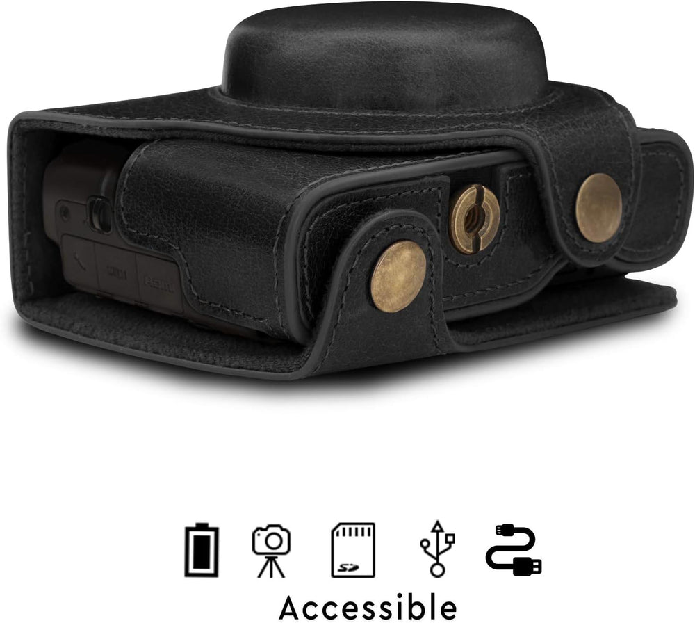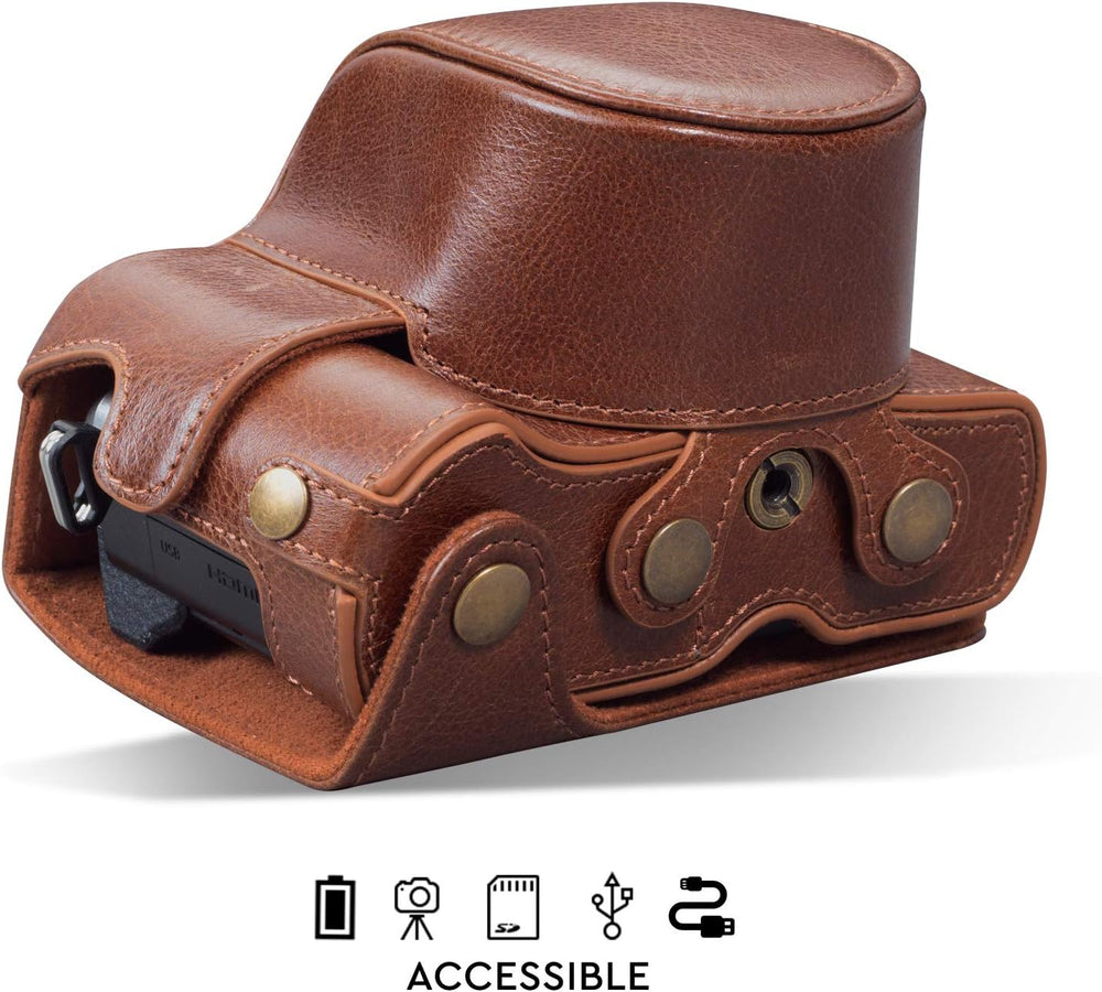 MegaGear MG1731 Ever Ready Leder Kameratasche mit Trageriemen kompatibel mit Sony Cyber-Shot DSC-RX1