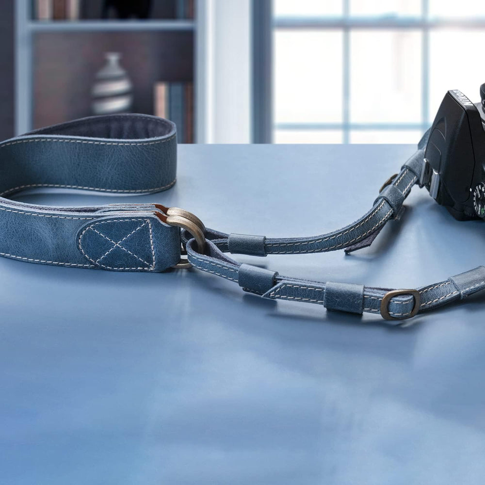 MegaGear MG2001 SLR, DSLR Schulter- oder Nackengurt aus echtem Leder (Blau) Azul, Azul