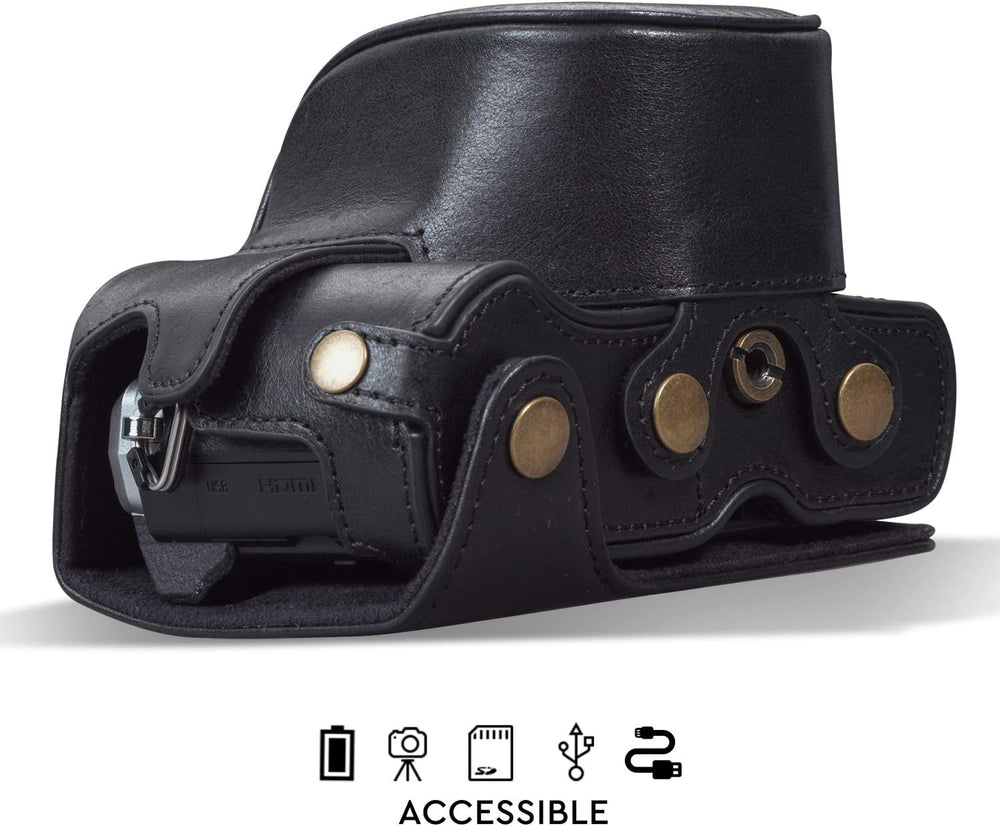 MegaGear MG1885 Ever Ready Kameratasche aus Echtleder, für Fujifilm X-T200, Schwarz, Schwarz