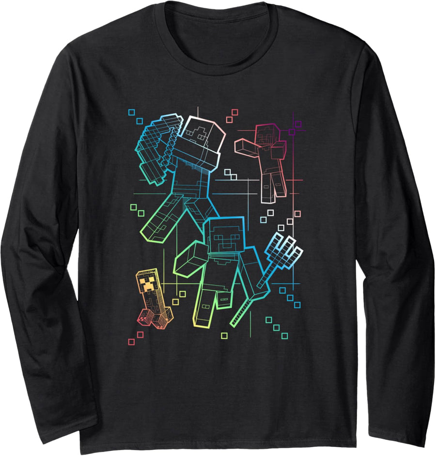 Minecraft Group Shot Rainbow Collage Langarmshirt