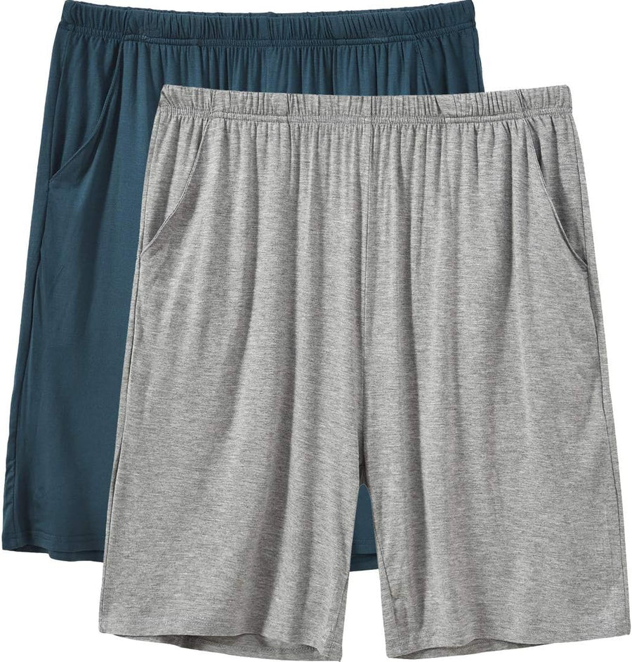 MoFiz Pyjamahose Herren Schlafanzughose Kurz Modal Schlafshorts Weit Loungewear, 2 Pack-05