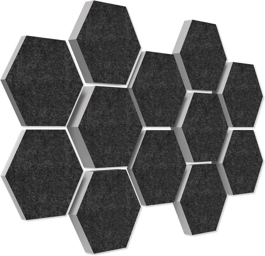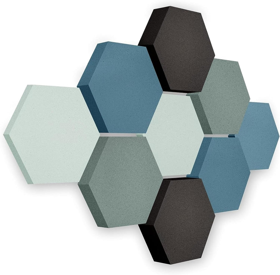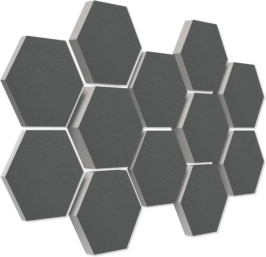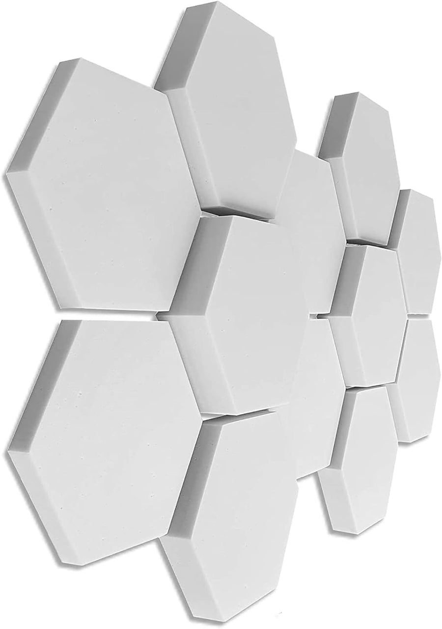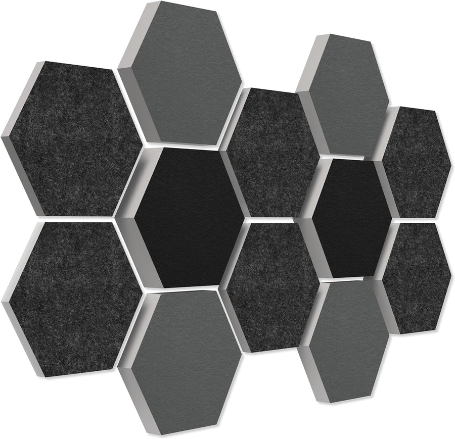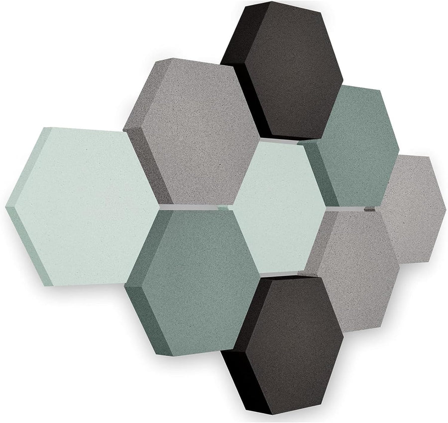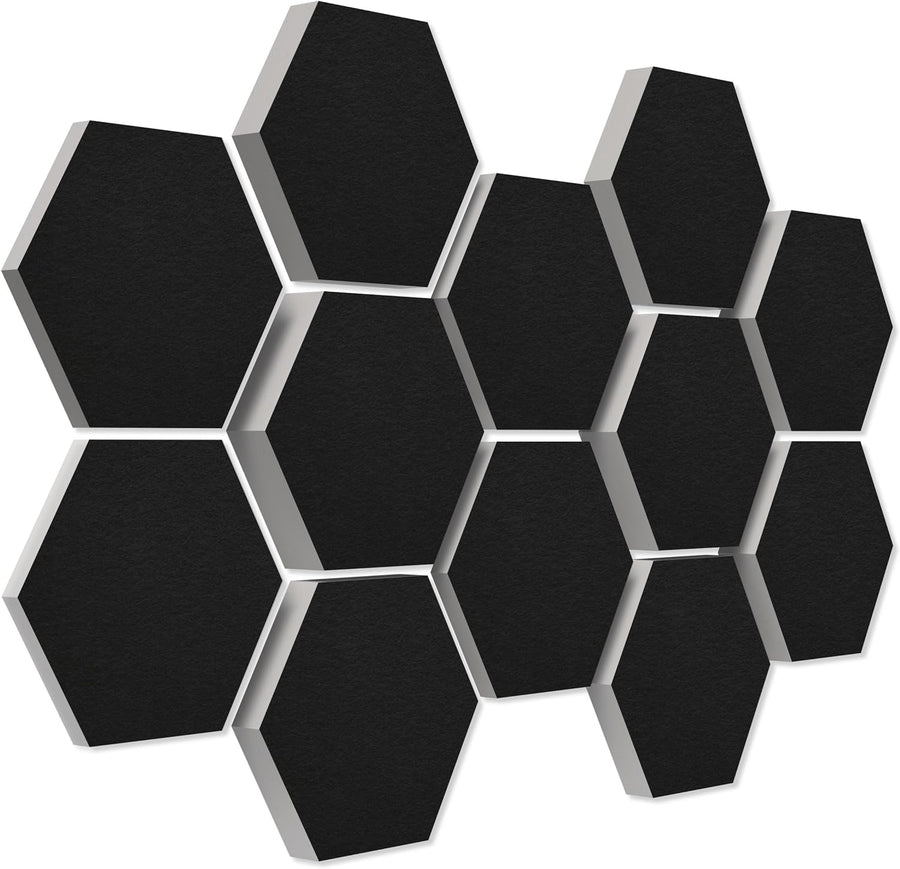 platino24 Schallabsorber 3D-Set Hexagon aus Basotect G+, 6 Elemente 2x je 300x30mm + 2x 300x50mm, 2x