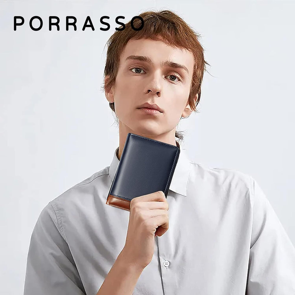 PORRASSO Herren Geldbörse Geldbeutel Kreditkartenetui Leder Brieftasche Wallet Kartenetui Bifold Por