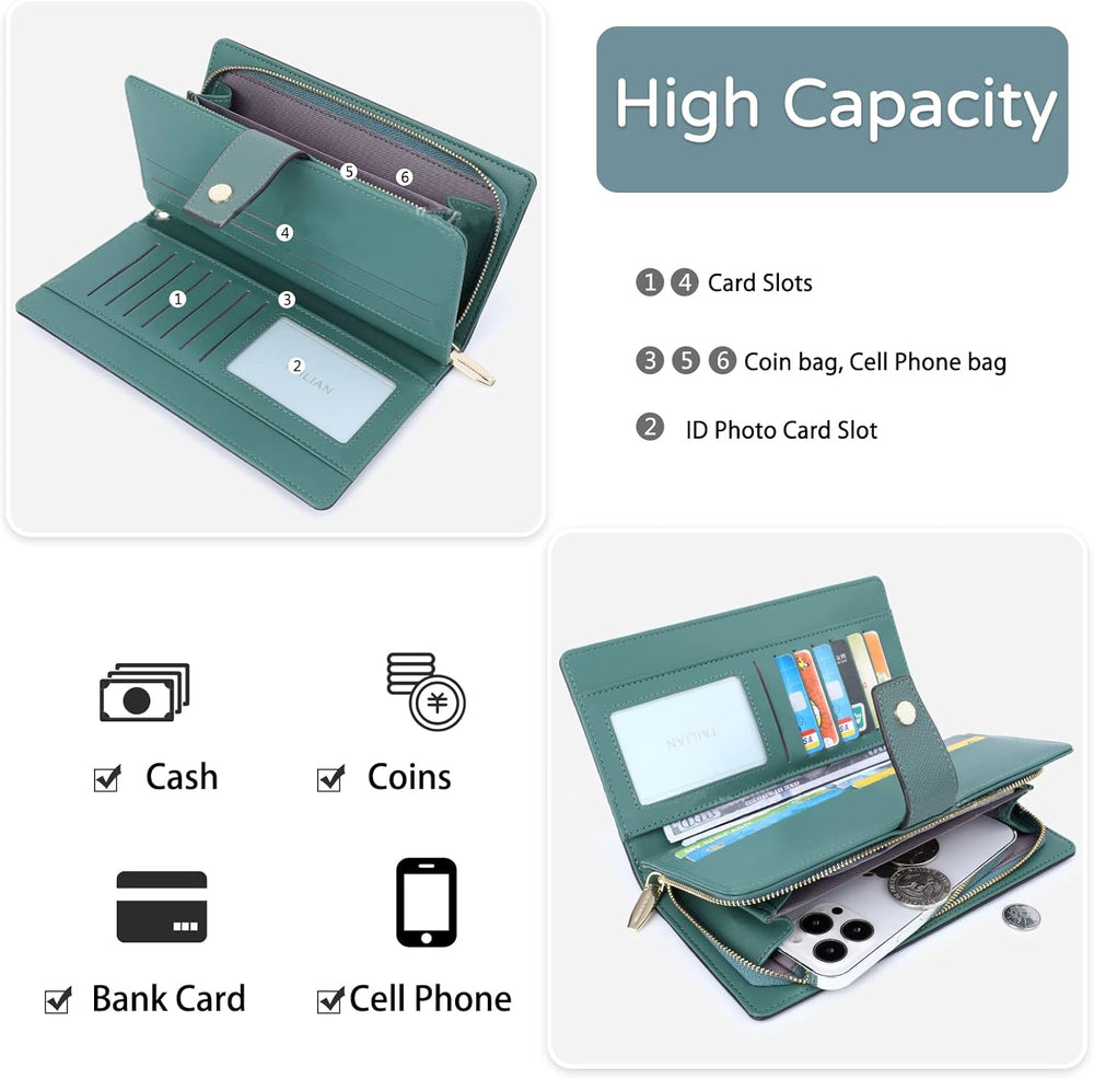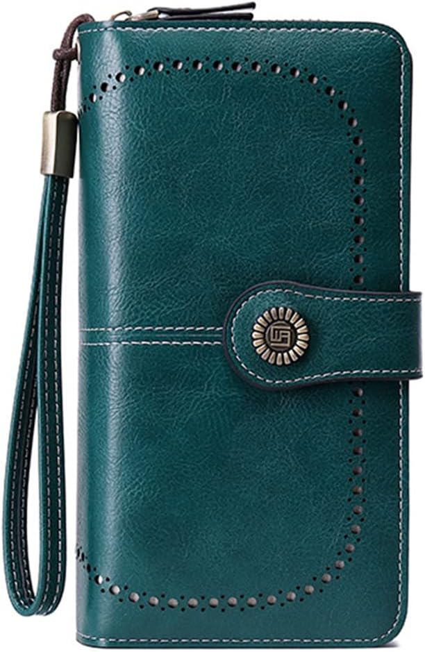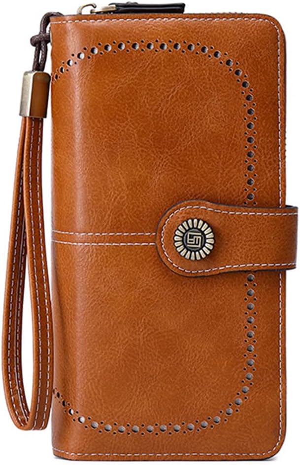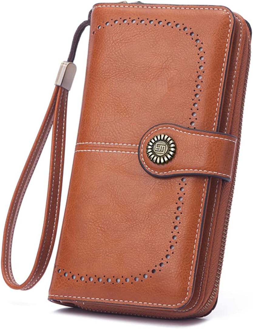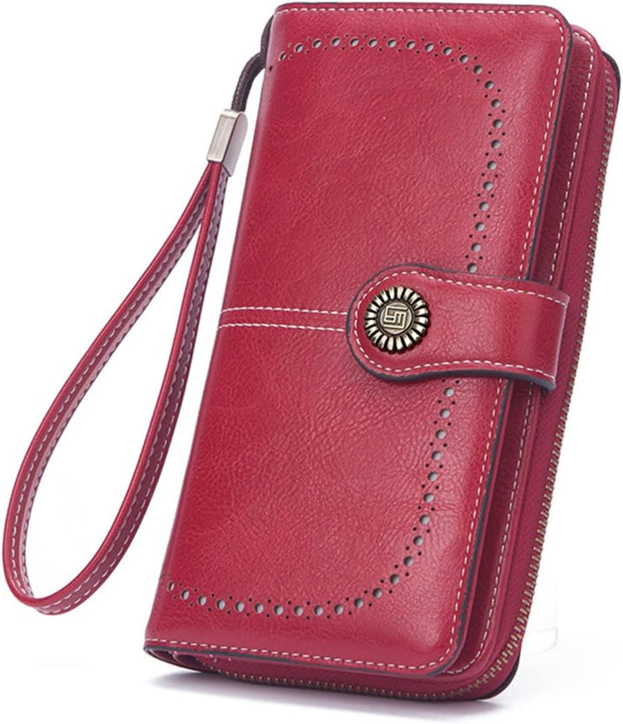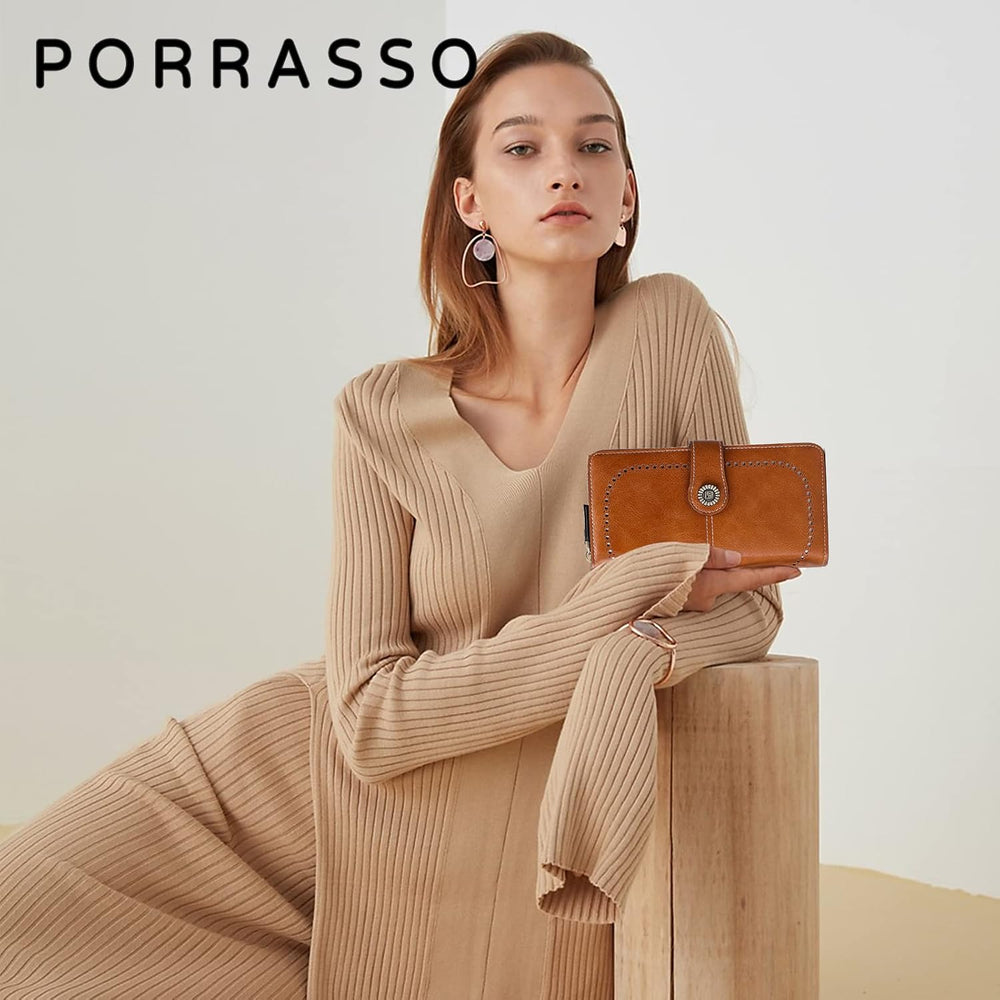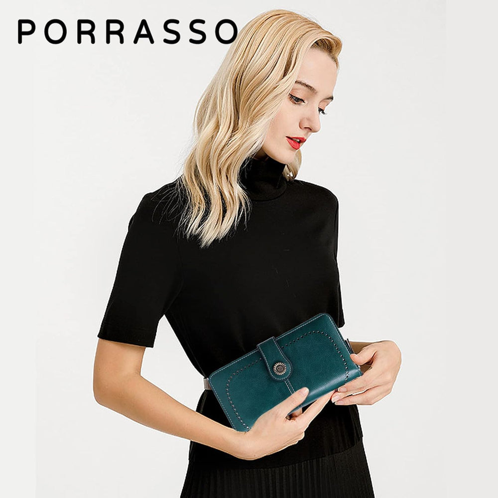 PORRASSO Geldbörse Damen Portemonnaie Leder Geldbeutel Kreditkartenetui Wristlet Bag mit Viele Fäche