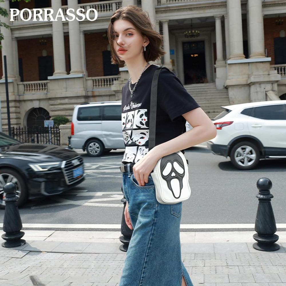 PORRASSO Ghost Umhängetasche Damen Schultertasche Crossbody Bag Paare Messenger-Tasche für Halloween