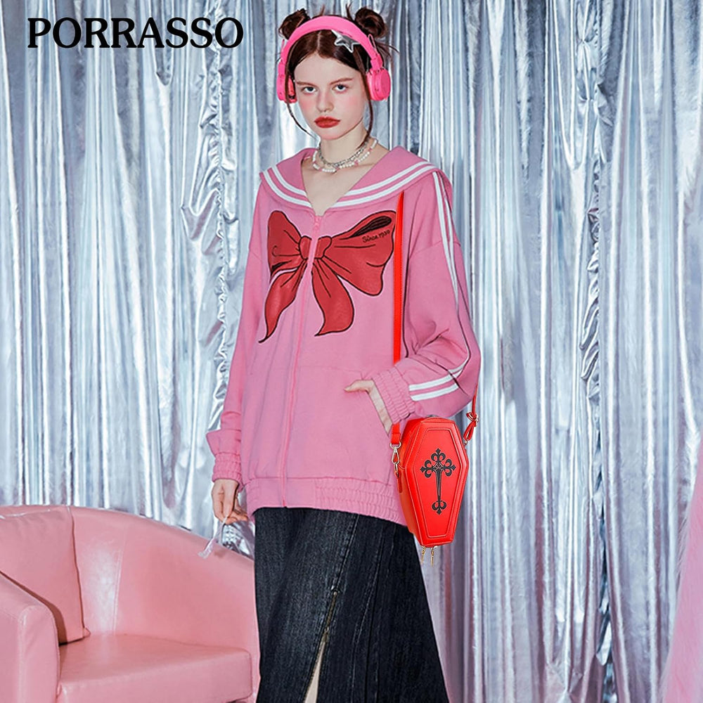PORRASSO Gothic Sarg Umhängetasche Damen Schultertasche Crossbody Bag Messenger-Tasche für Halloween