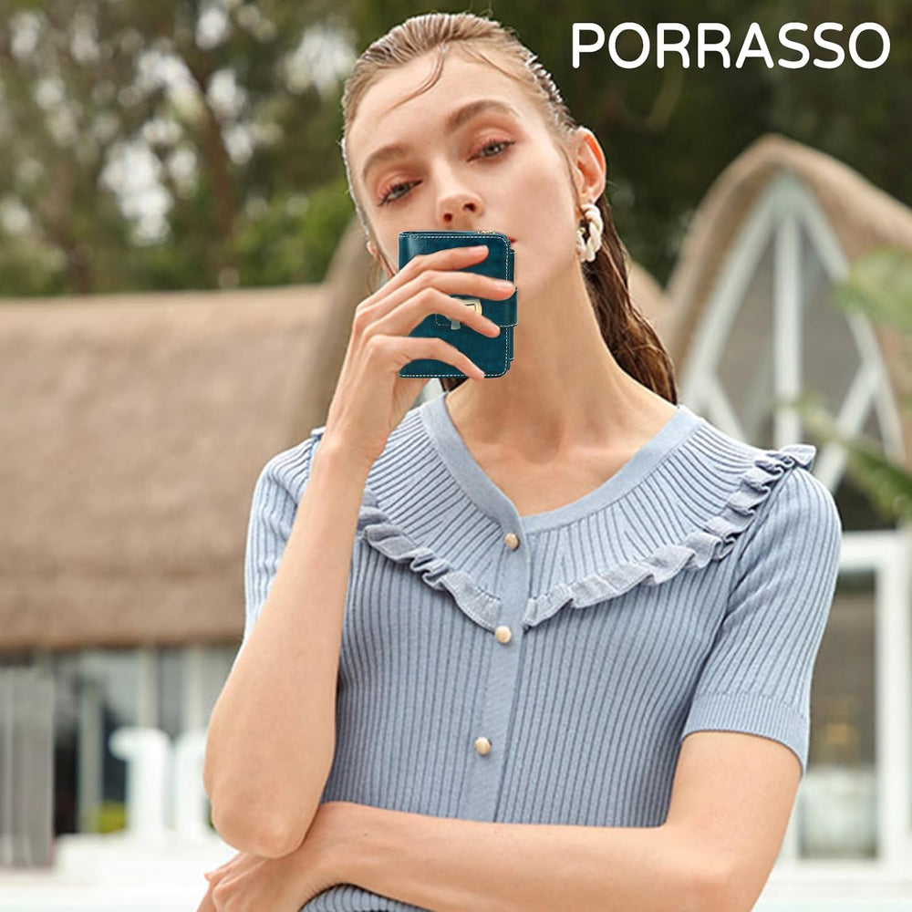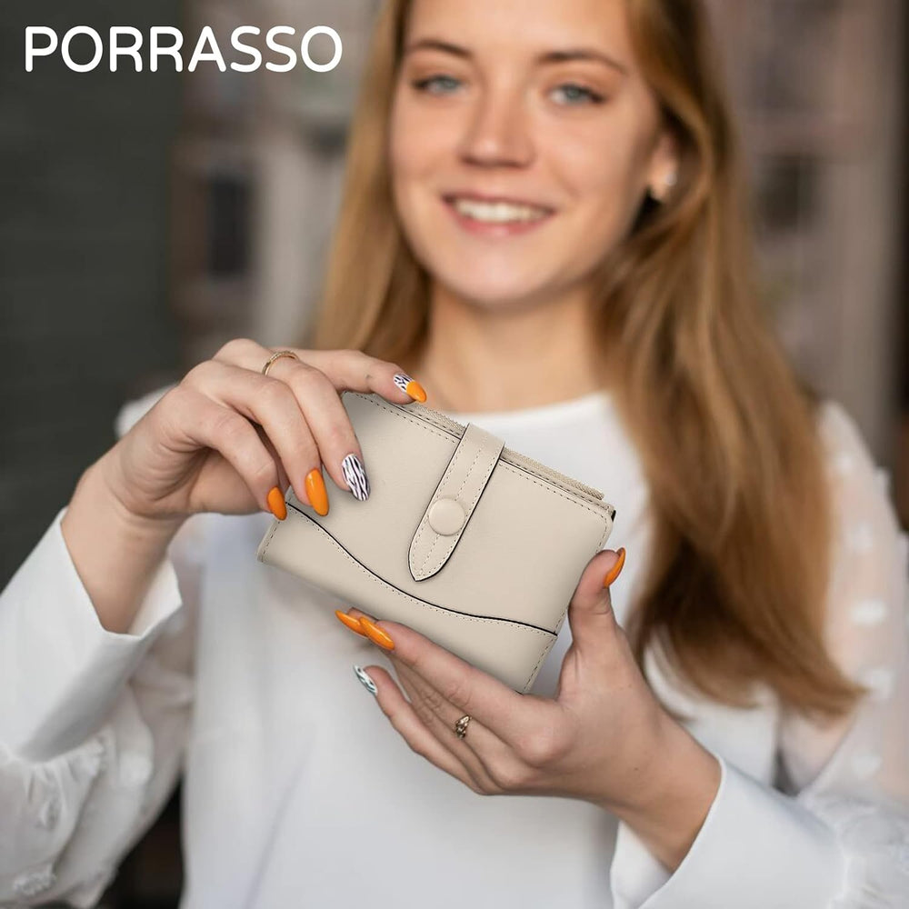 PORRASSO Geldbörse Frauen Geldbeutel Leder Kreditkartenetui Multifunktional Portemonnaie Damen Geldb