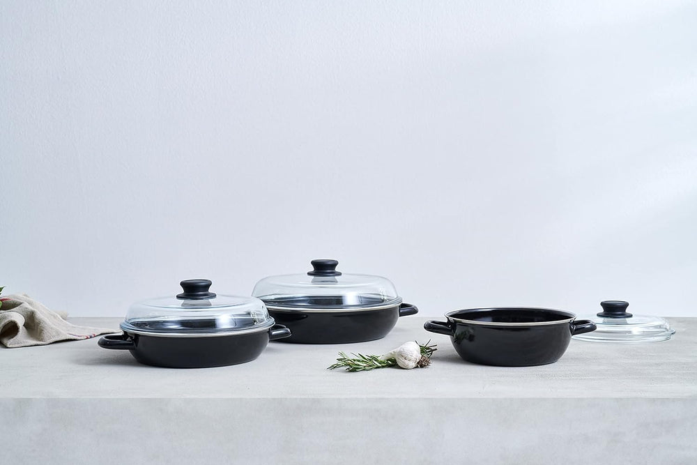 Riess, 0077-022, Schmorpfanne 28, OHNE Glasdeckel, CLASSIC - SCHWARZEMAILLE, Durchmesser 28 cm, Höhe