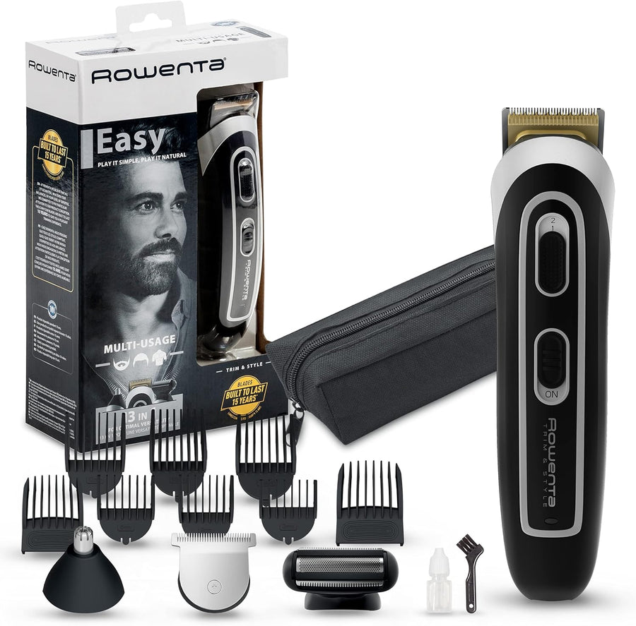 Rowenta TN9140 Trim & Style 13-in-1 Haarschneider mit Edelstahlklingen und 6 Kämmen, Lithium-Akku, B