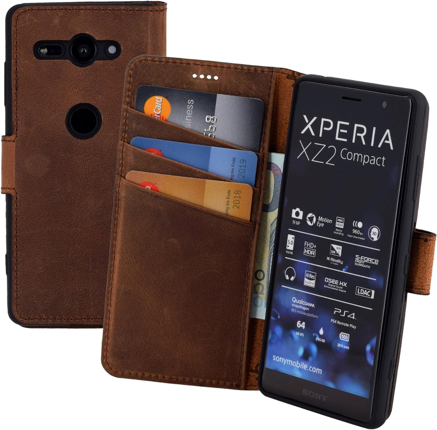Suncase Book-Style kompatibel für Sony Xperia XZ2 Compact Hülle (Slim-Fit) Leder Tasche Handytasche