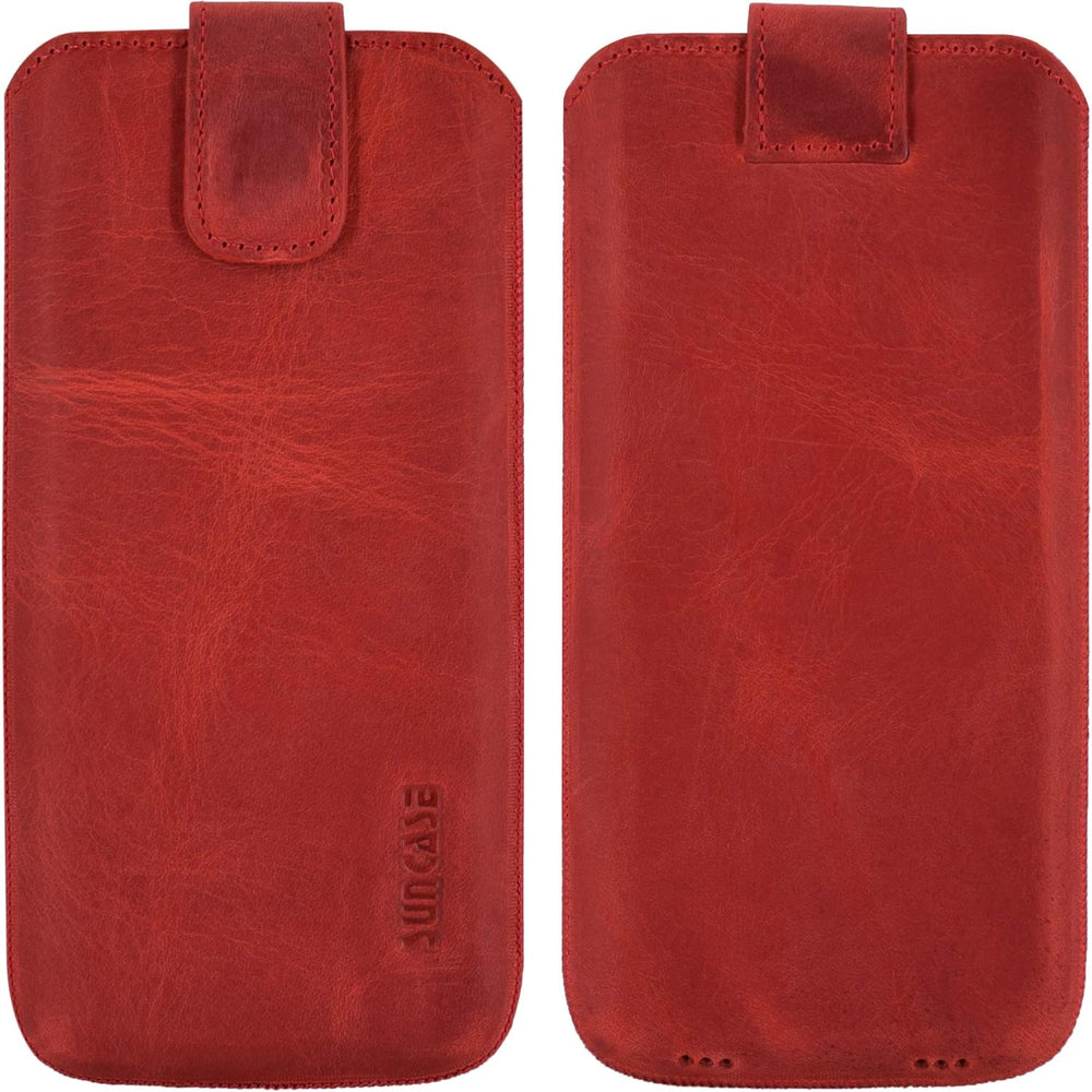 Suncase ECHT Ledertasche Leder Etui *Slim-Edition* für Swissvoice G50 Leder Hülle Handytasche (mit R