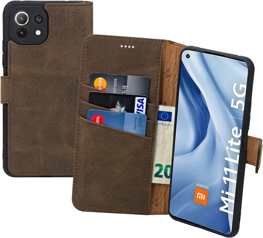 Suncase Book-Style Hülle kompatibel mit Xiaomi Mi 11 Lite 5G Leder Tasche (Slim-Fit) Lederhülle Hand