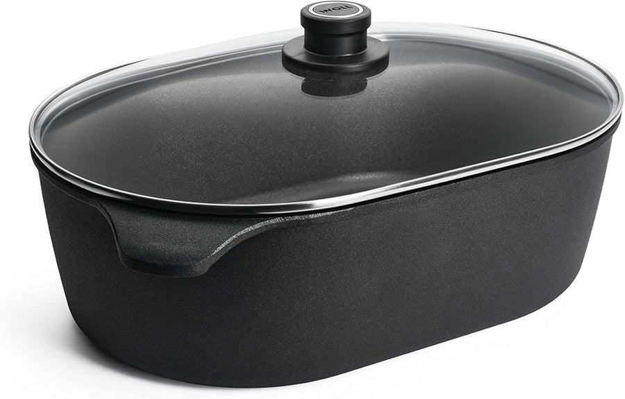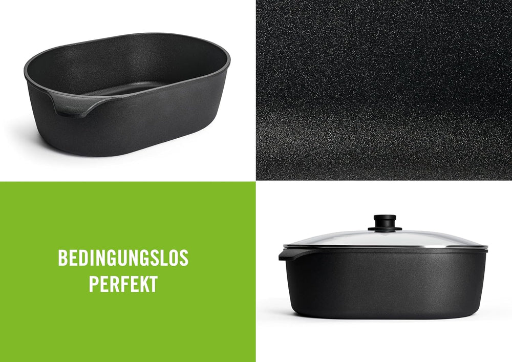 Woll Iron Bräter mit Deckel und Silikongriffen - Induktiv -, 34 x 26 cm, 12,5 cm hoch, 7,5l - Geeign