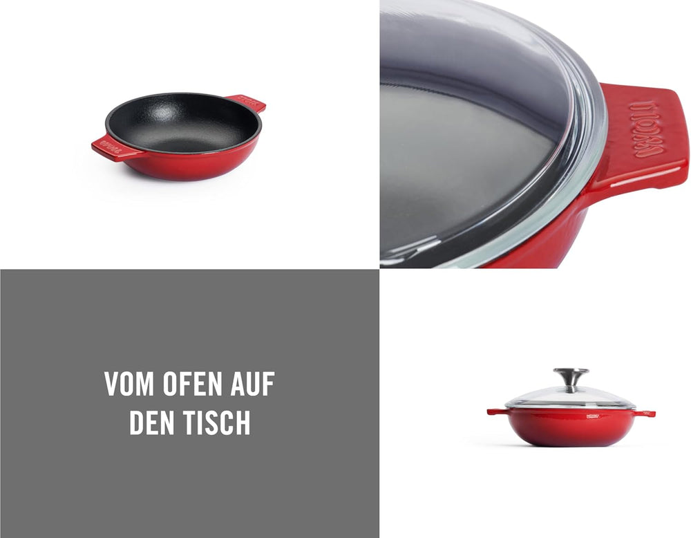 Woll Iron Servierpfanne mit Deckel und Silikongriffen - Induktiv -, Ø 18 cm, 5,5 cm hoch - Geeignet