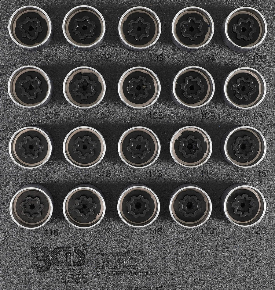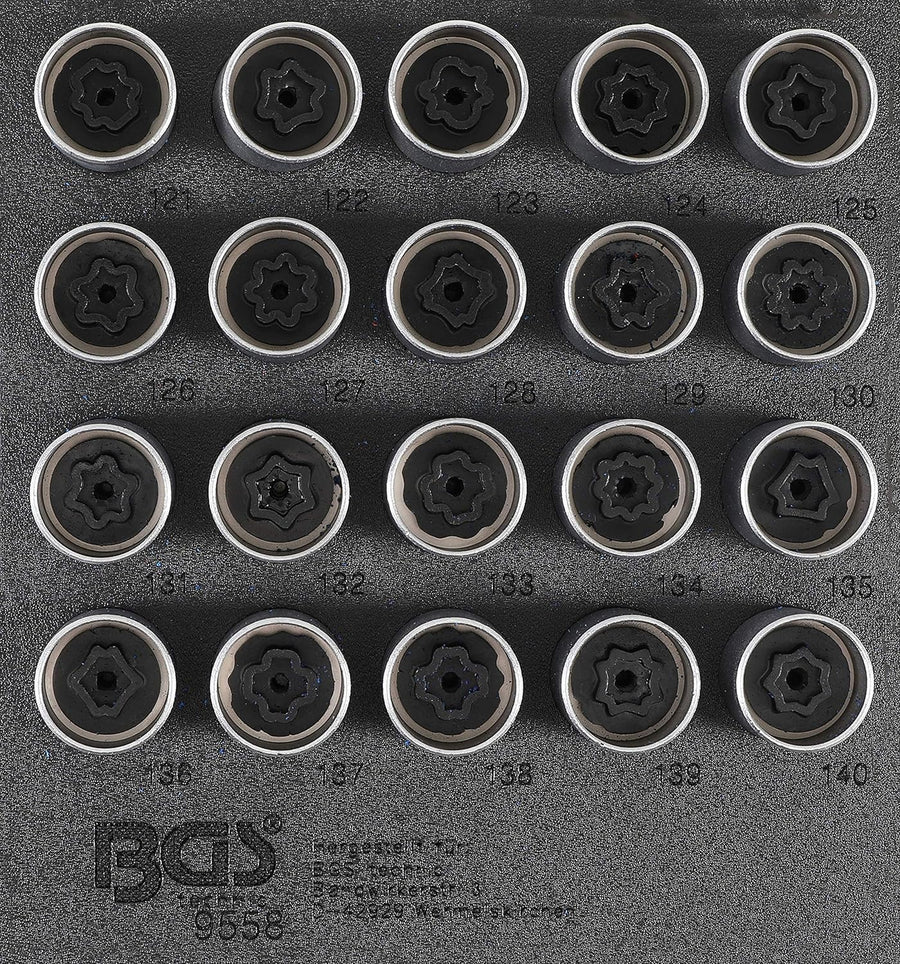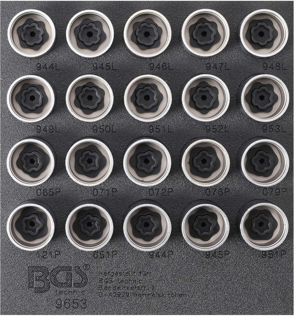 BGS 9653 | Werkstattwageneinlage 1/6: Felgenschloss-Werkzeug-Satz für Volvo | 20-tlg. Volvo | Var. 2