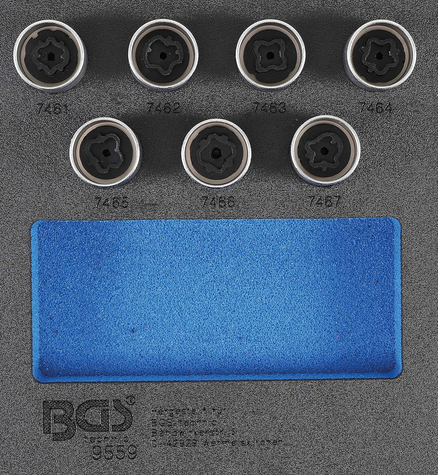BGS 9559 | Werkstattwageneinlage 1/6: Felgenschloss-Werkzeug-Satz für Opel (Typ D) | 7-tlg. Opel | T